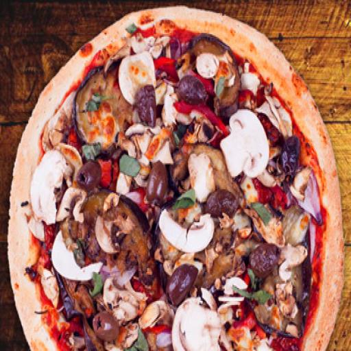 Chargrilled Eggplantchargrilled eggplant, mushrooms, spanish onions, roasted capsicum, kalamata olives & brie topped with fresh herbs on a tomato base