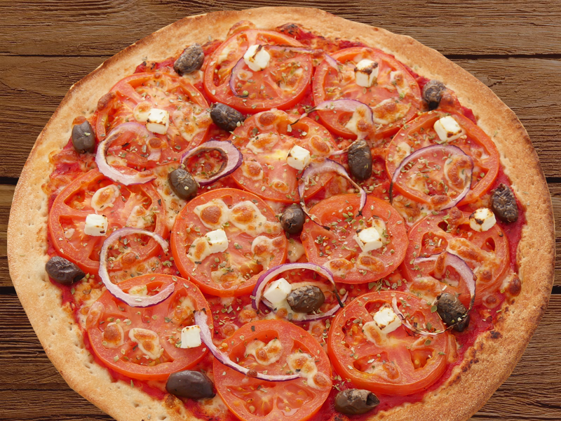 Zante Vegetarianfreshly sliced tomatoes, finely chopped garlic, kalamata olives, spanish onions, crumbled feta, topped with fresh oregano & drizzle of olive oil on atomato base