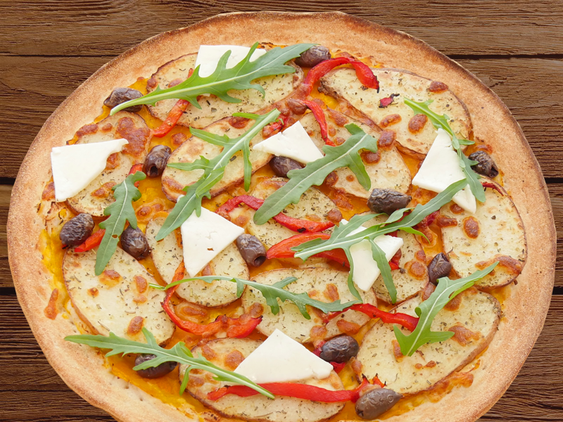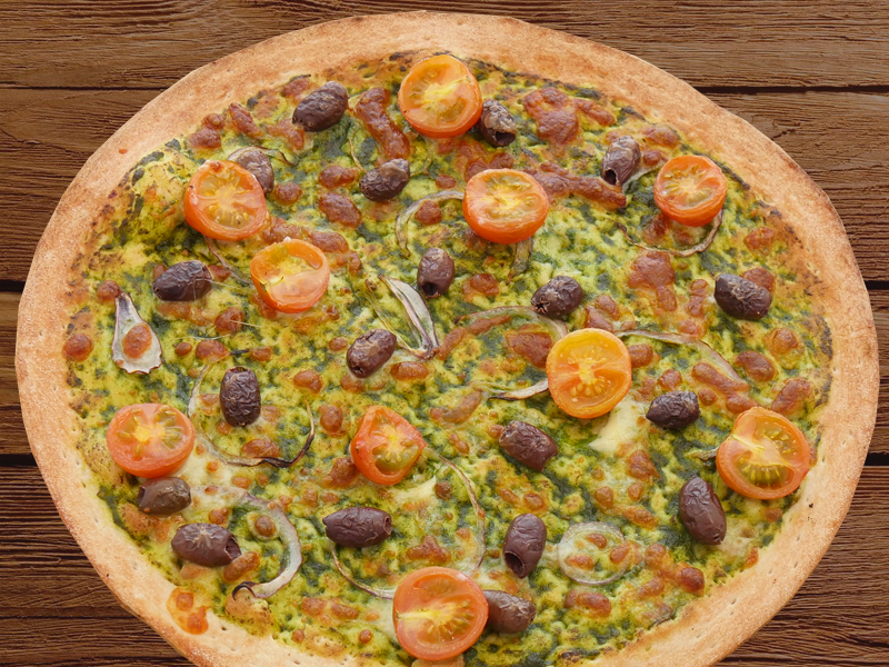 Vegetarian Supremeartichokes, grilled eggplant, roasted capsicum, sundried tomatoes, mushrooms, spanish onions, topped with pesto aioli on a tomato base
