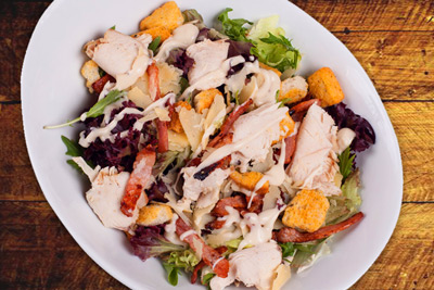 Chicken Caesar Salad$10.50Chicken, mixed leaf, crispy bacon, croutons, parmesan, tossed in a caesar dressing (chicken or salmon extra $2.00)