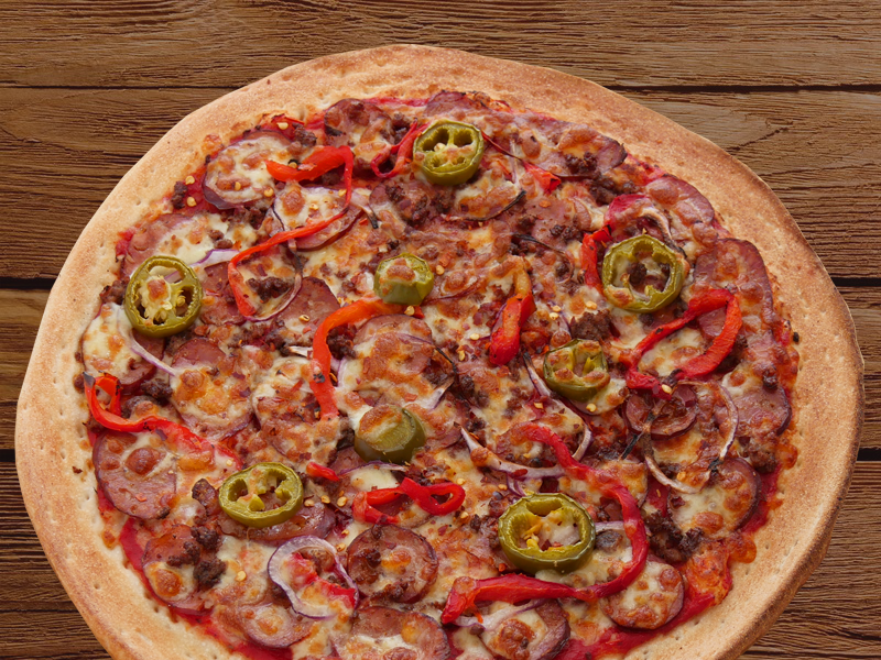 Gourmet Pepperonipepperoni, ground beef, spanish onions, fresh capsicum, garlic & chilli on a tomato base