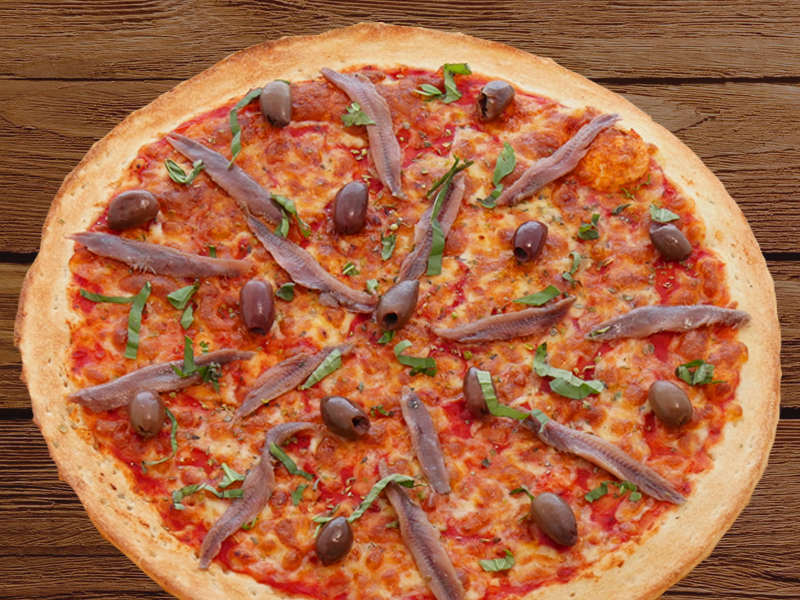 Napoletanamozzarella, kalamata olives, anchovies & basil on a tomato baseMeat Pizzas