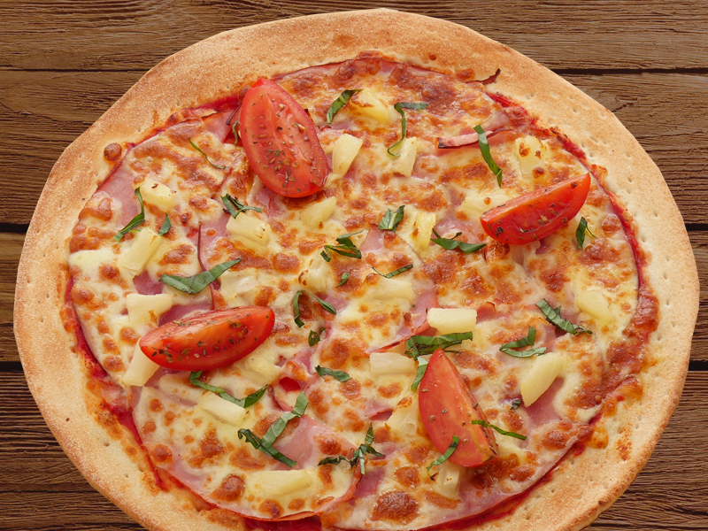 Hawaiianham & pineapple on a tomato base